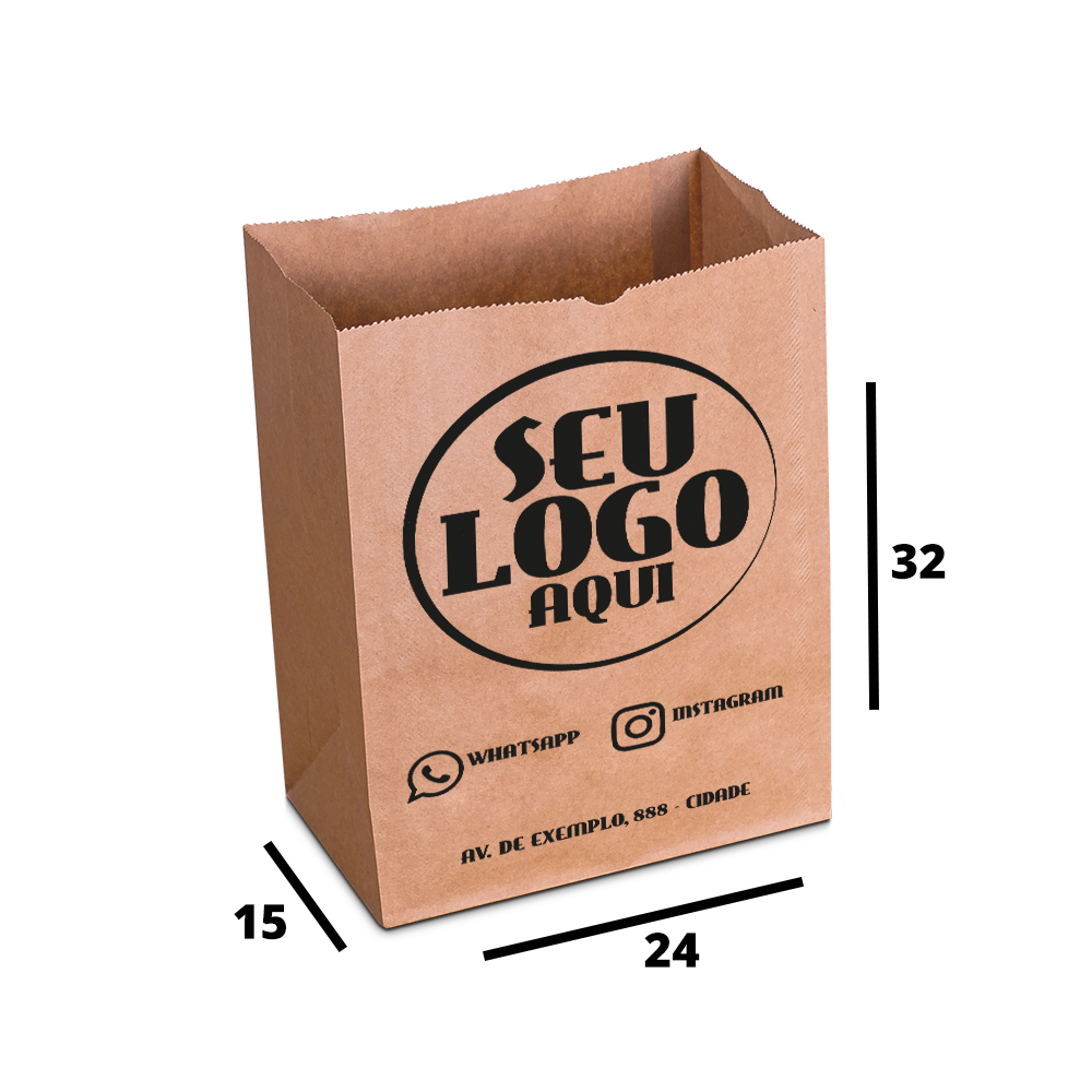 Saco Kraft M Personalizado Frente 1 COR 24x15x32cm (LxPxA) + CLICHÊ – 100 UNID